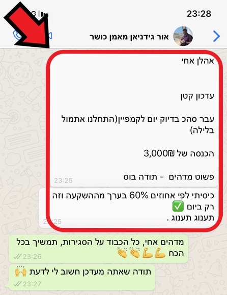 כתב ויתור: ברצוני ליידע אותך כי ההכנסות והתוצאות המוצגות באתר הן יוצאות דופן ולא נועדו לשמש כערבויות. למעשה, כפי שמוגן בחוק, אני לא יכול להבטיח דבר לגבי היכולת שלך להשיג תוצאות דומות או להרוויח כסף עם הרעיונות, מידע, כלים או אסטרטגיות שלי. אני לא מכיר אותך, אני לא יודע אם את/ה יודע/ת למכור את השירות/מוצר שלך ובסופו של דבר ההצלחה שלך תלויה אך ורק בך. המטרה שלי היא לעזור לך על ידי מתן שירות איכותי, כיוון ואסטרטגיות שעבדו טוב עבורי ועבור הלקוחות שלי ואני מאמין שאני יכול לעזור לך להתקדם על סמך ניסיון קודם והוכחות בשטח. כל תנאי השימוש שלי, מדיניות הפרטיות והסתייגויות עבור השירות שלי והאתר הזה ניתן לראות בקישור למעלה.